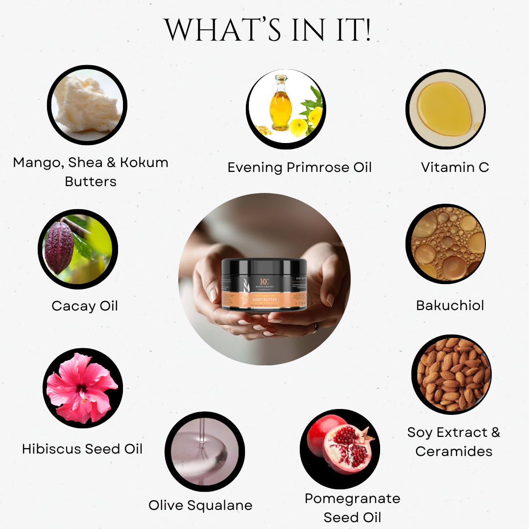 - Enhanced Firmness and Elasticity: With natural collagen-boosting ingredients, these body butters help firm and improve elasticity, giving skin a youthful, lifted appearance.